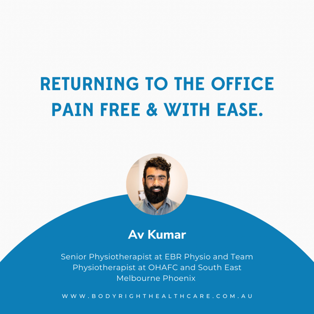 With workplaces and life in general slowly returning to some form of normality over the coming weeks and months, the timing has never been better to remind ourselves of the importance of having an ergonomic set-up when working. The daily grind has changed for good over the last two years and that has been the most common reason for a patient to visit a clinician – seeking a cure. We sat down with Av Kumar – Senior Physiotherapist at EBR Physio and Team Physiotherapist at OHAFC and South East Melbourne Phoenix – for some insight into the common issues he’s seeing and how we can prevent them becoming our new normal.